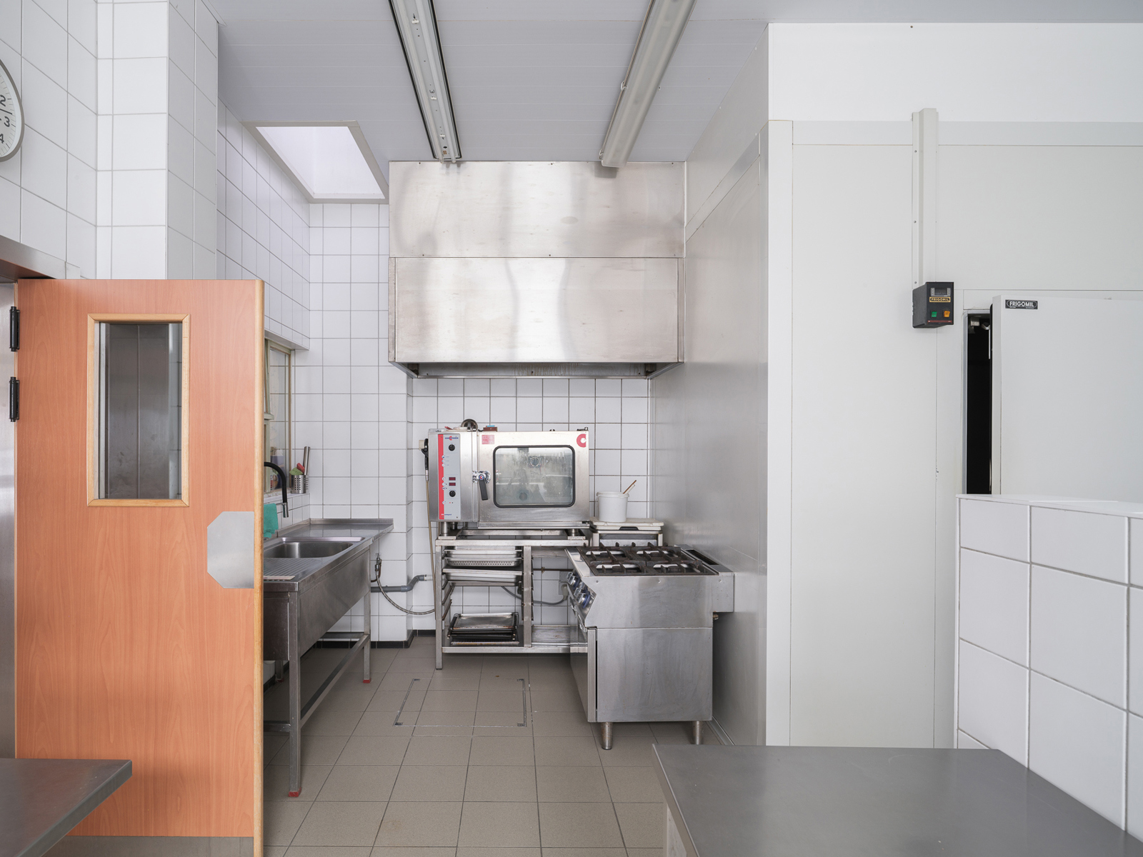 Het gelijkvloers is momenteel volledig ingericht als commerciële ruimte en omvat vooraan een voormalige viswinkel, achteraan een praktische keuken en een volwaardig atelier met frigocel. Deze indeling maakt het pand bijzonder geschikt als winkel, horecazaak, kantoor, dienstverlening of ruime woning.