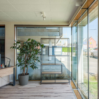 De ruimte is lichtrijk dankzij de grote raampartijen aan de straatzijde en werd praktisch ingedeeld met een open plan dat zich eenvoudig laat aanpassen. Keuken en toilet zijn reeds voorzien, waardoor u meteen van start kan gaan of het pand verder kan verfijnen naar eigen behoefte.