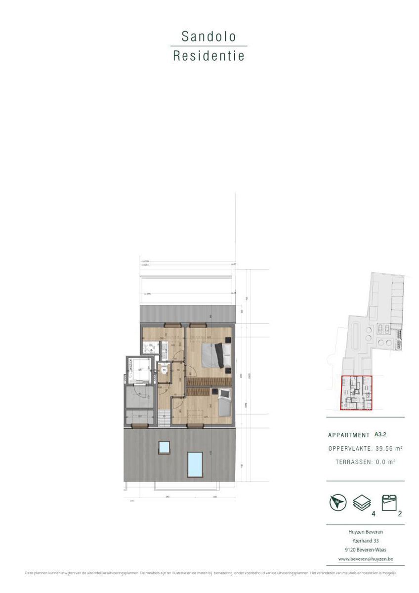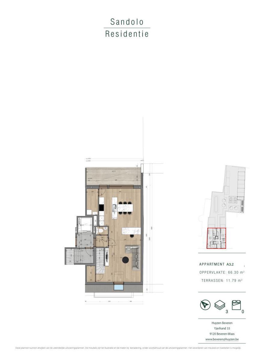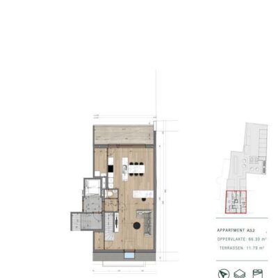 Appartement 3.2 is een 2-slaapkamerappartement van 105,86 m² met een mooi terras (11,79 m²).